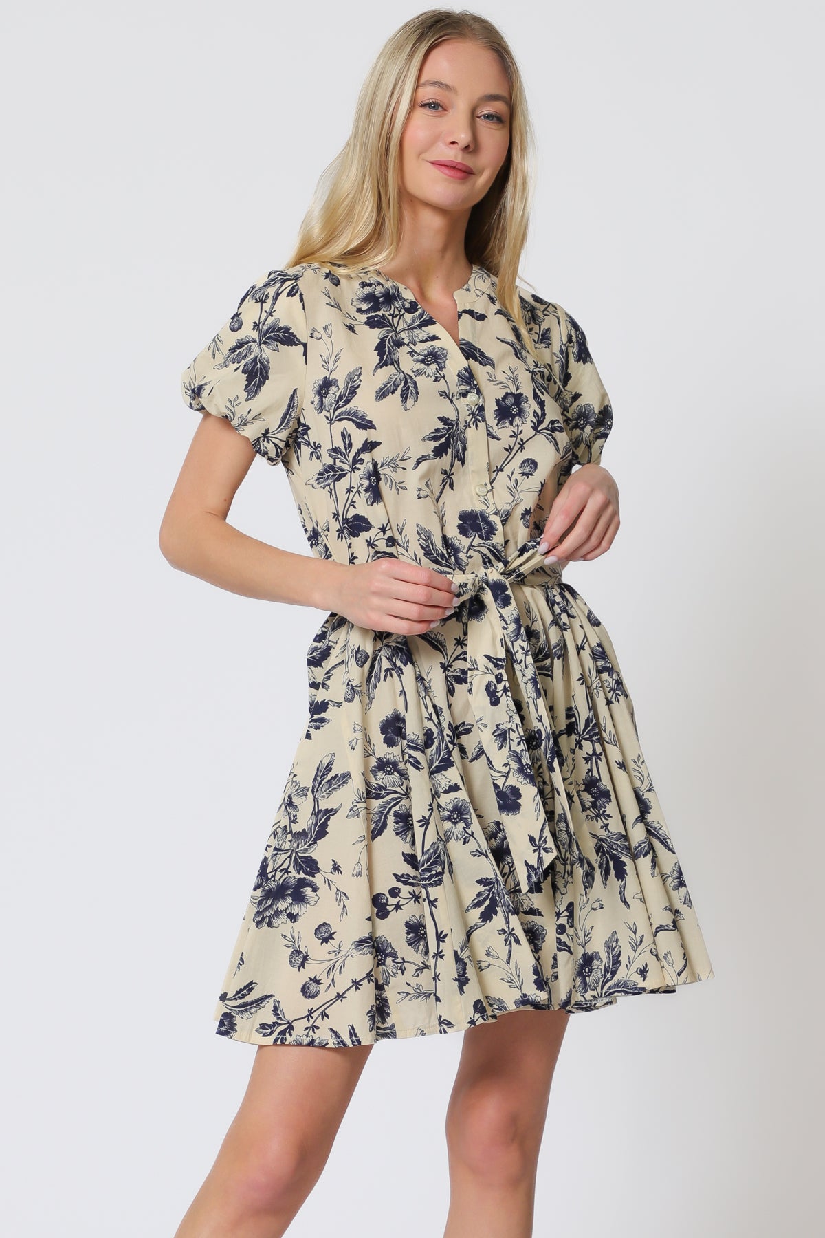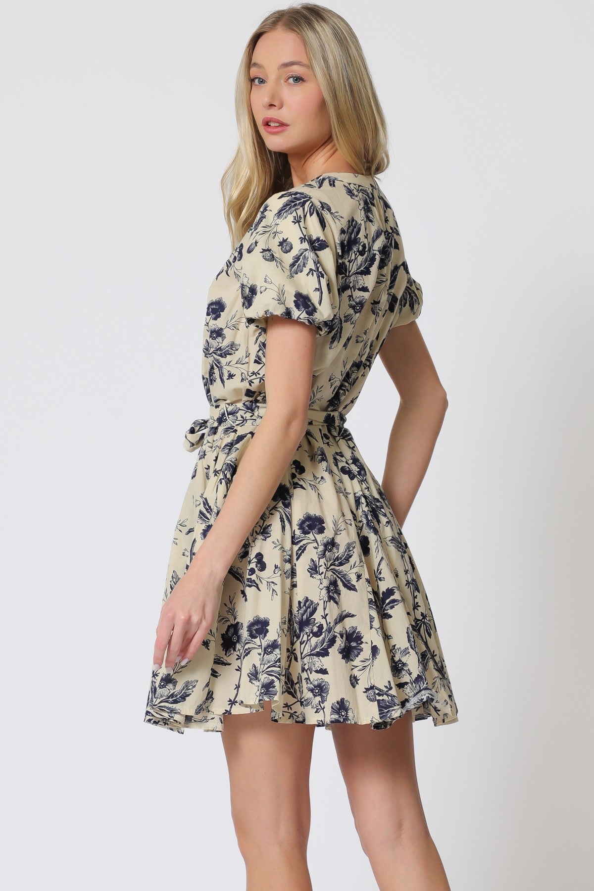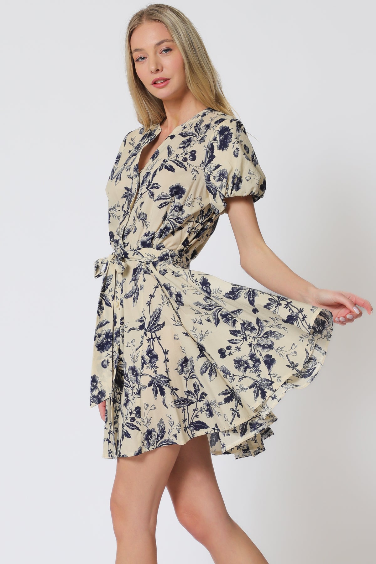 Vestido corto manga corta con escote cruzado y cintur n en cintura.