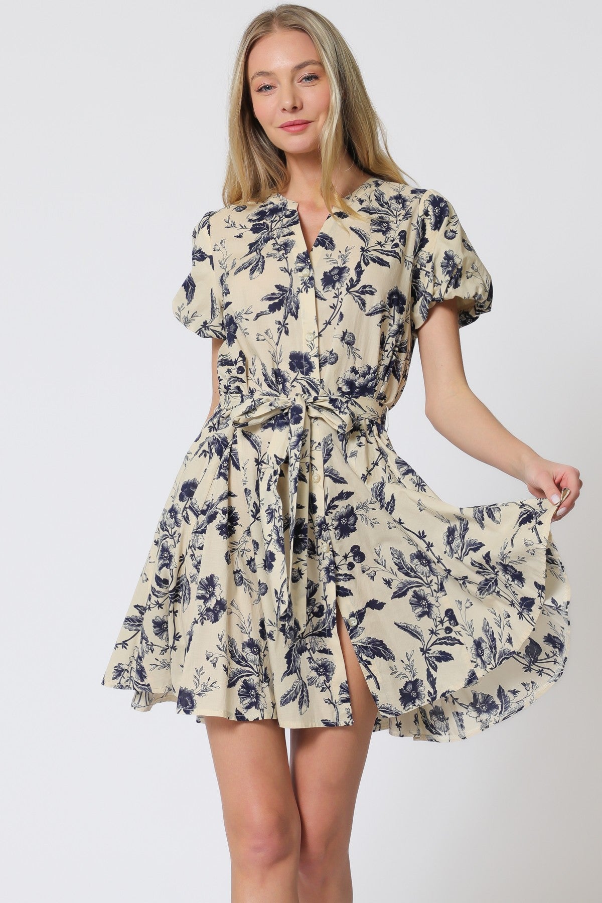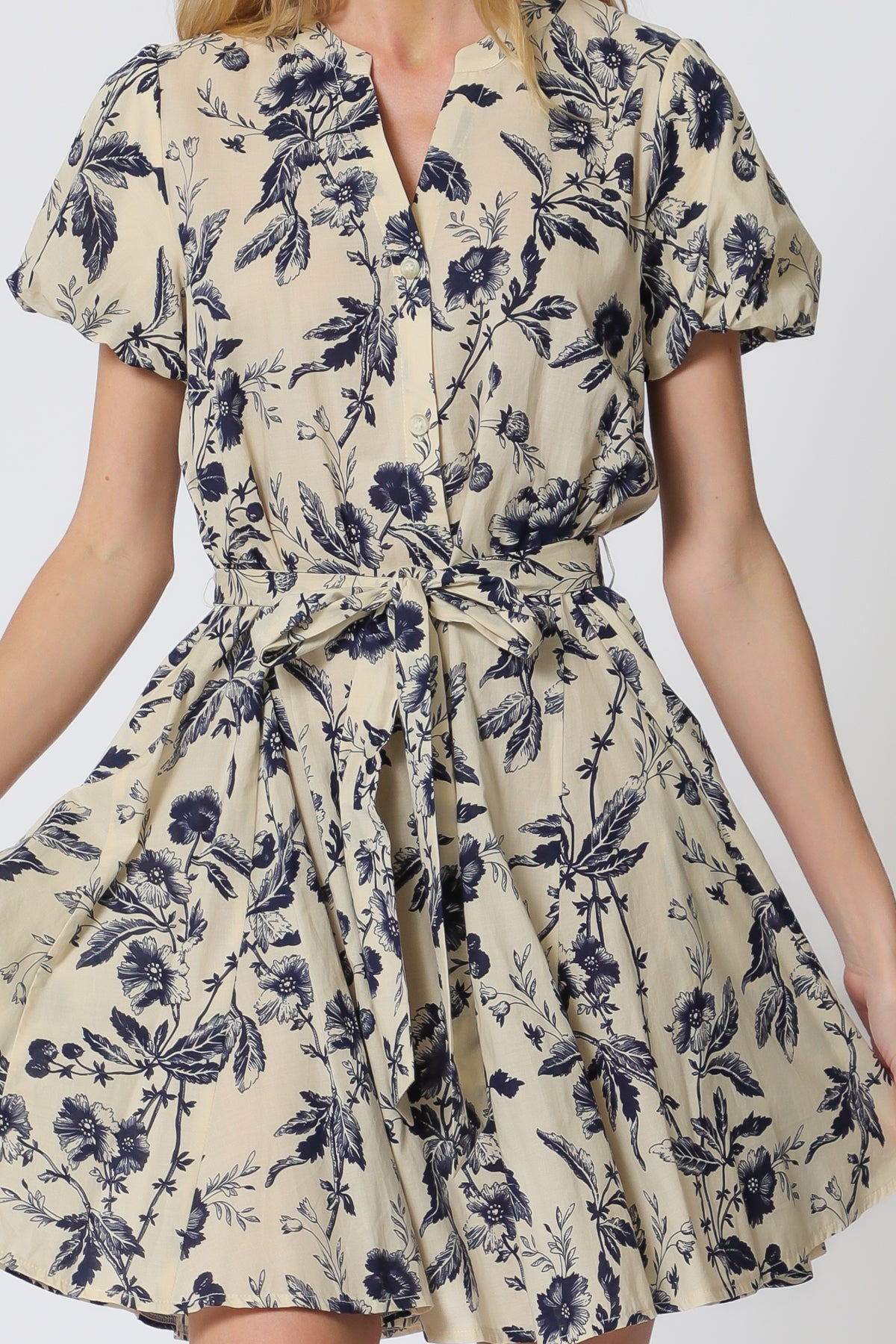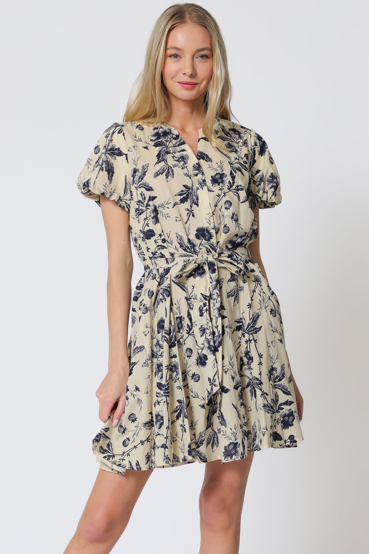 Vestido corto manga corta con escote cruzado y cintur n en cintura.