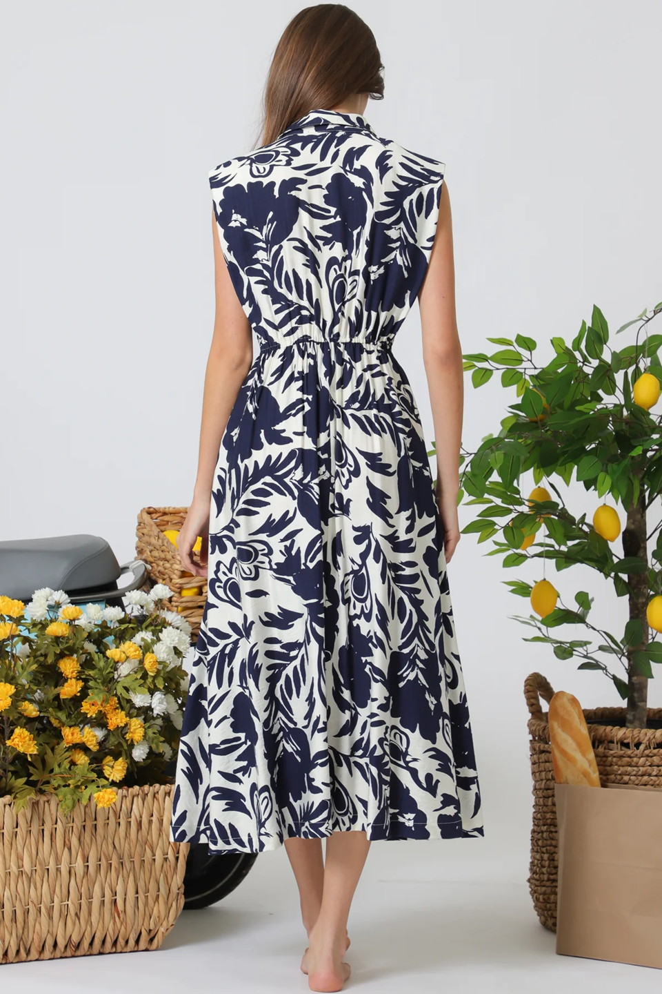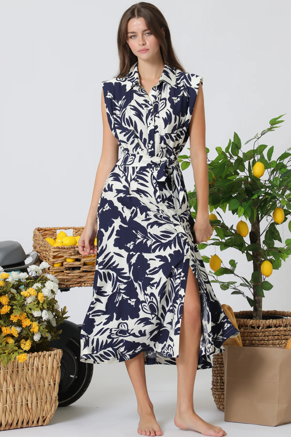Vestido midi sin mangas con botones frontales cintur n y abertura lateral.