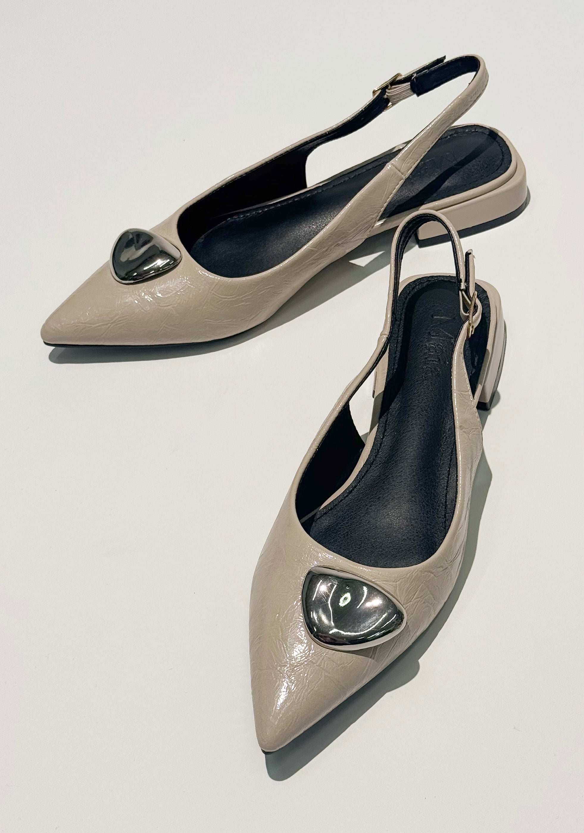 Zapato tipo slingback con punta fina y adorno metálico (Altura de 0.7 pulgadas aproximadamente)