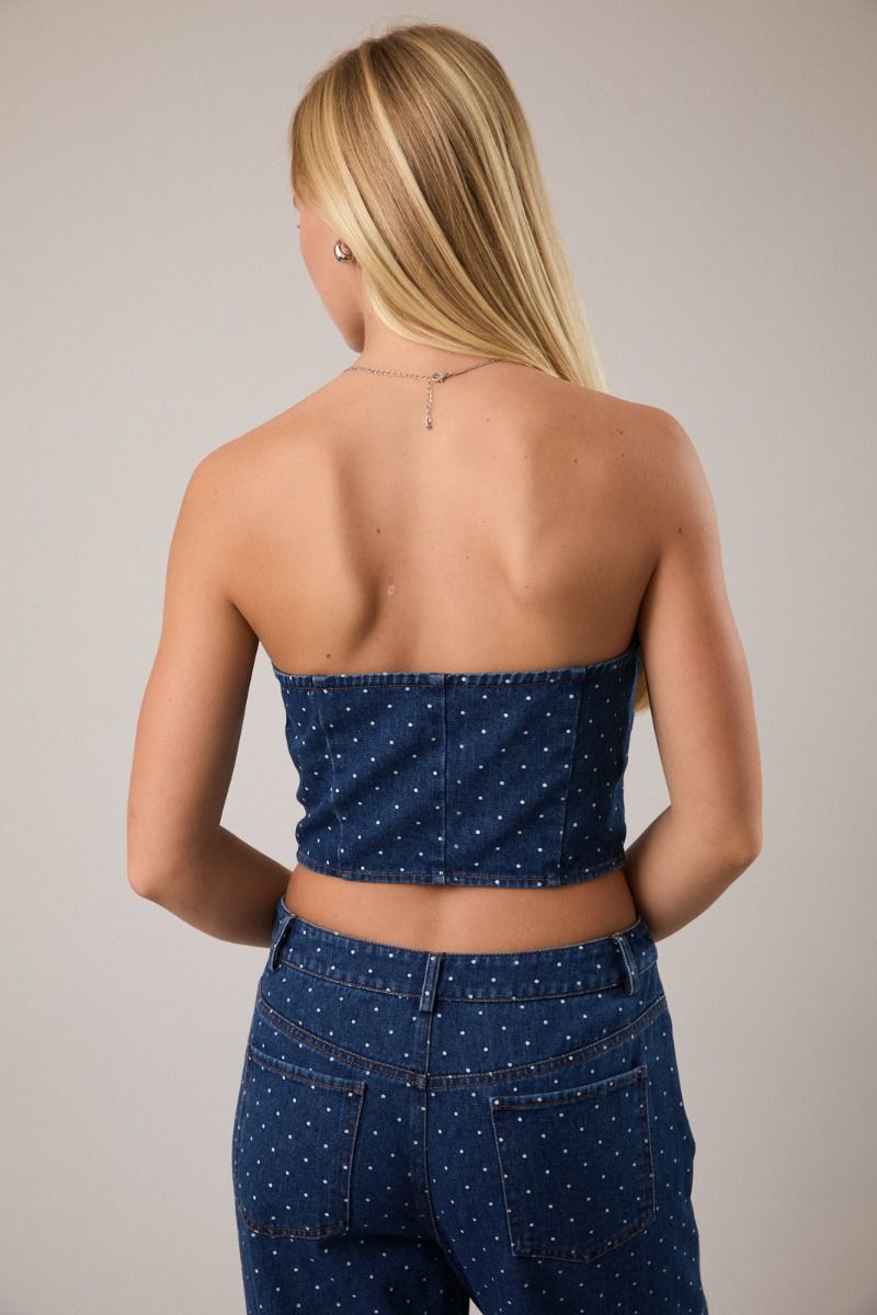 Crop top strapless con botones frontales que hace juego con Pantalón Daria.