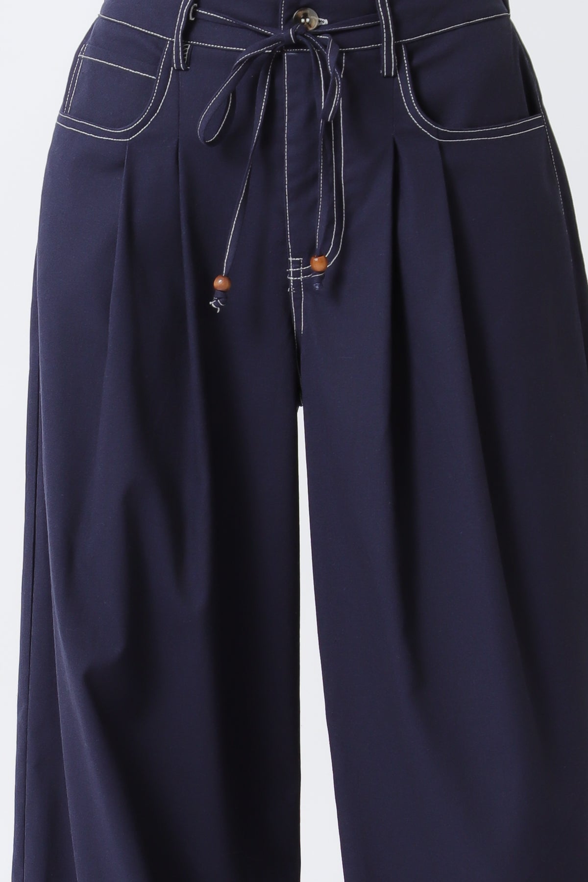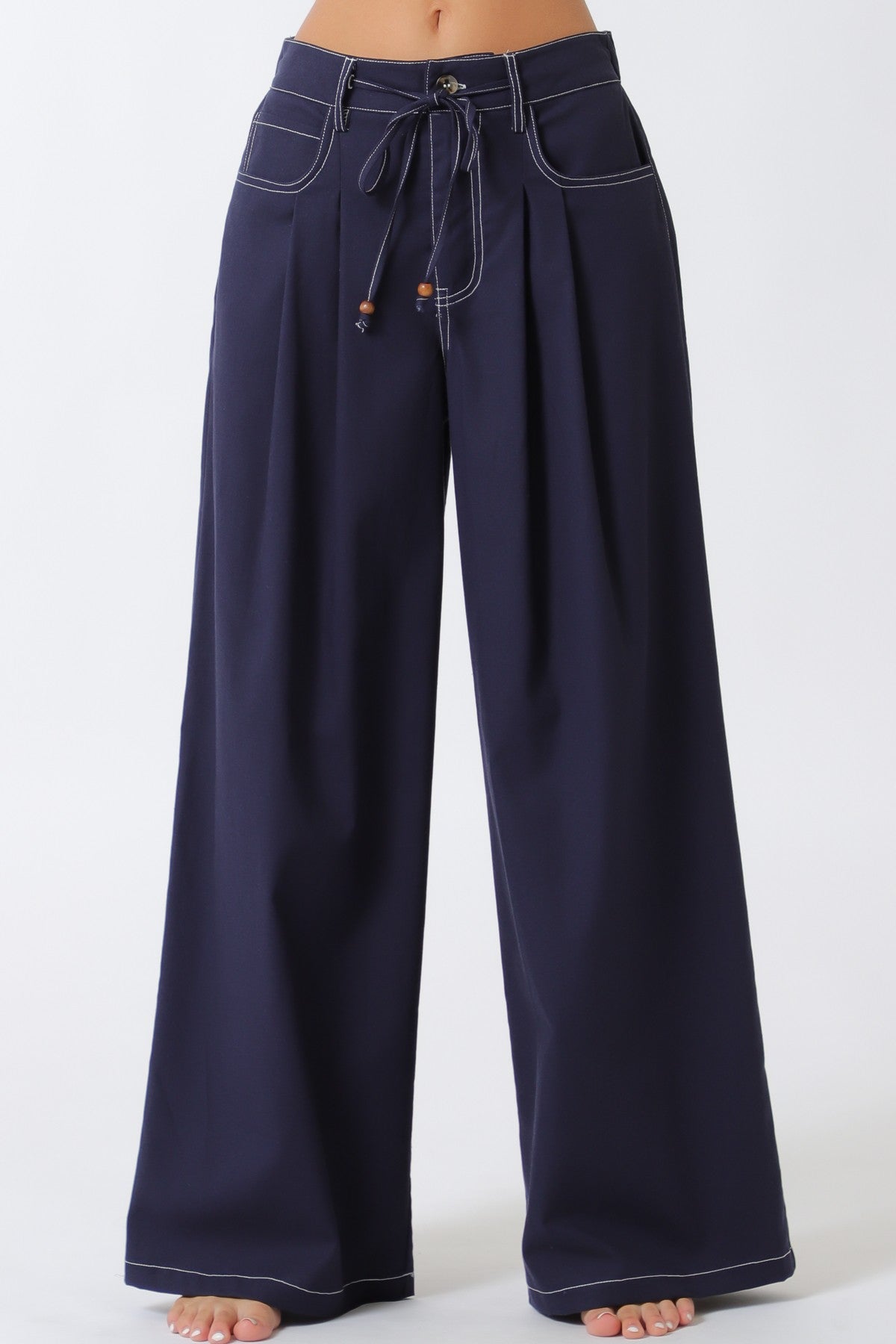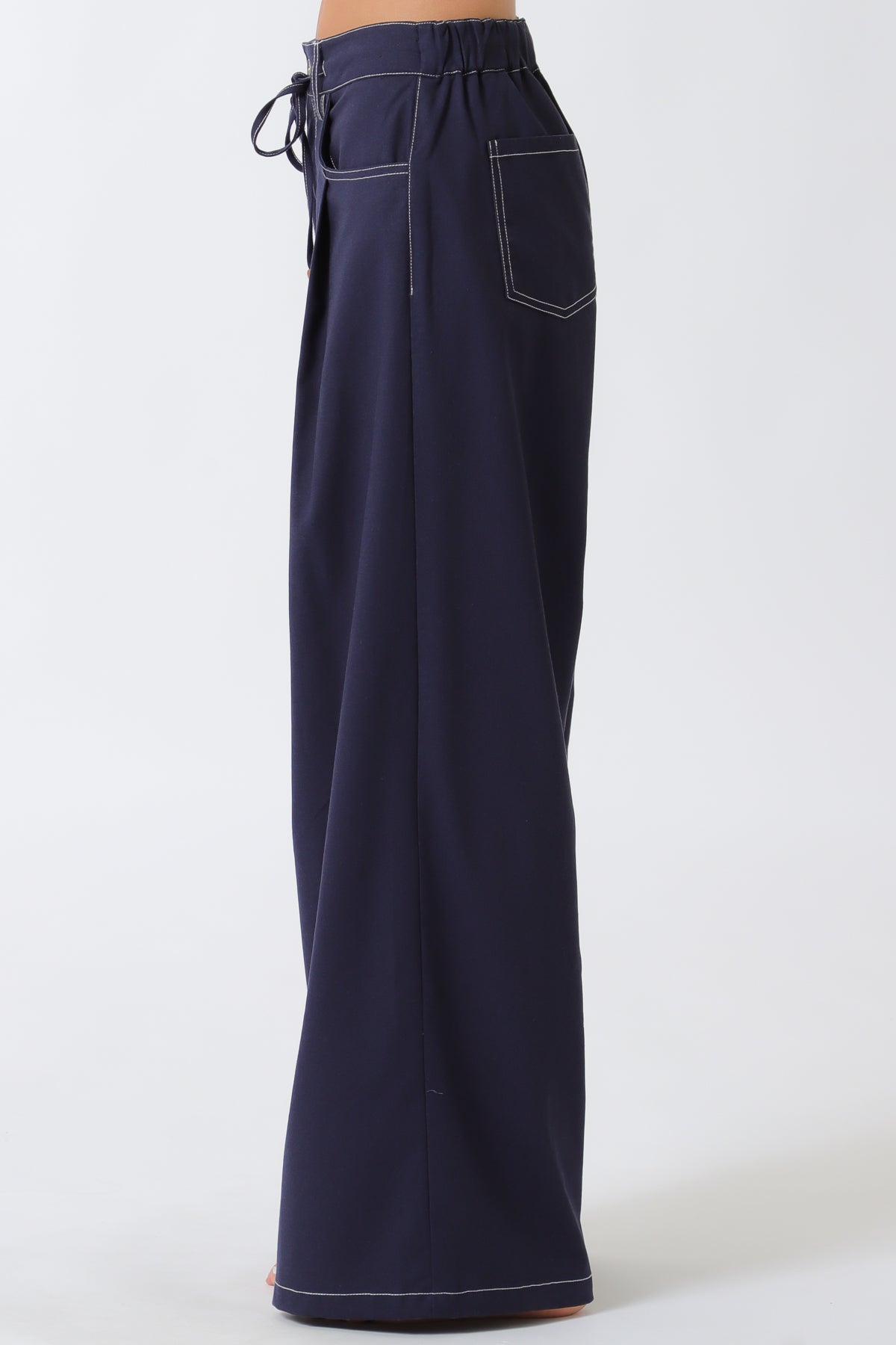 Pantalón amplio de tiro alto con bolsillos y lazo ajustable.
