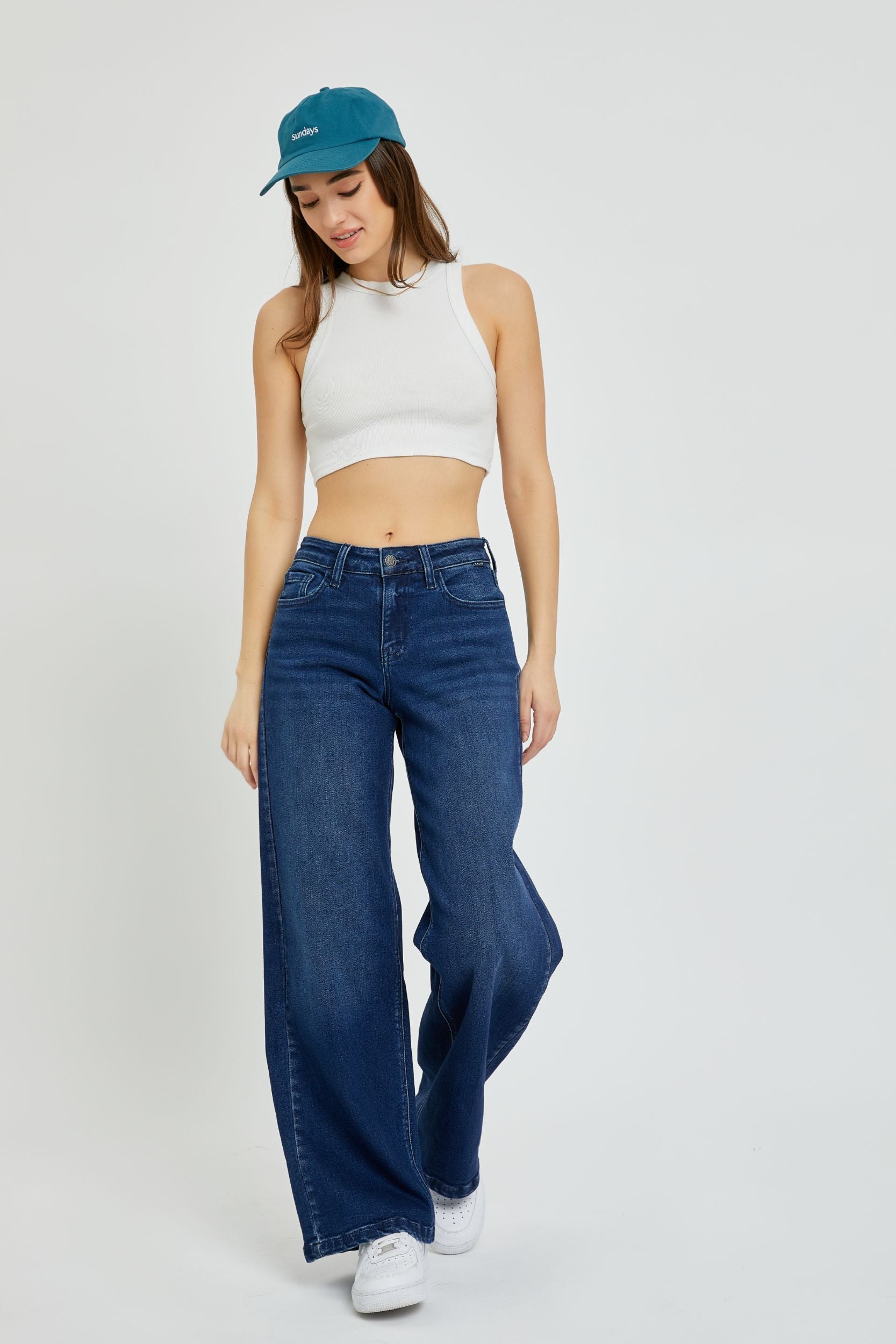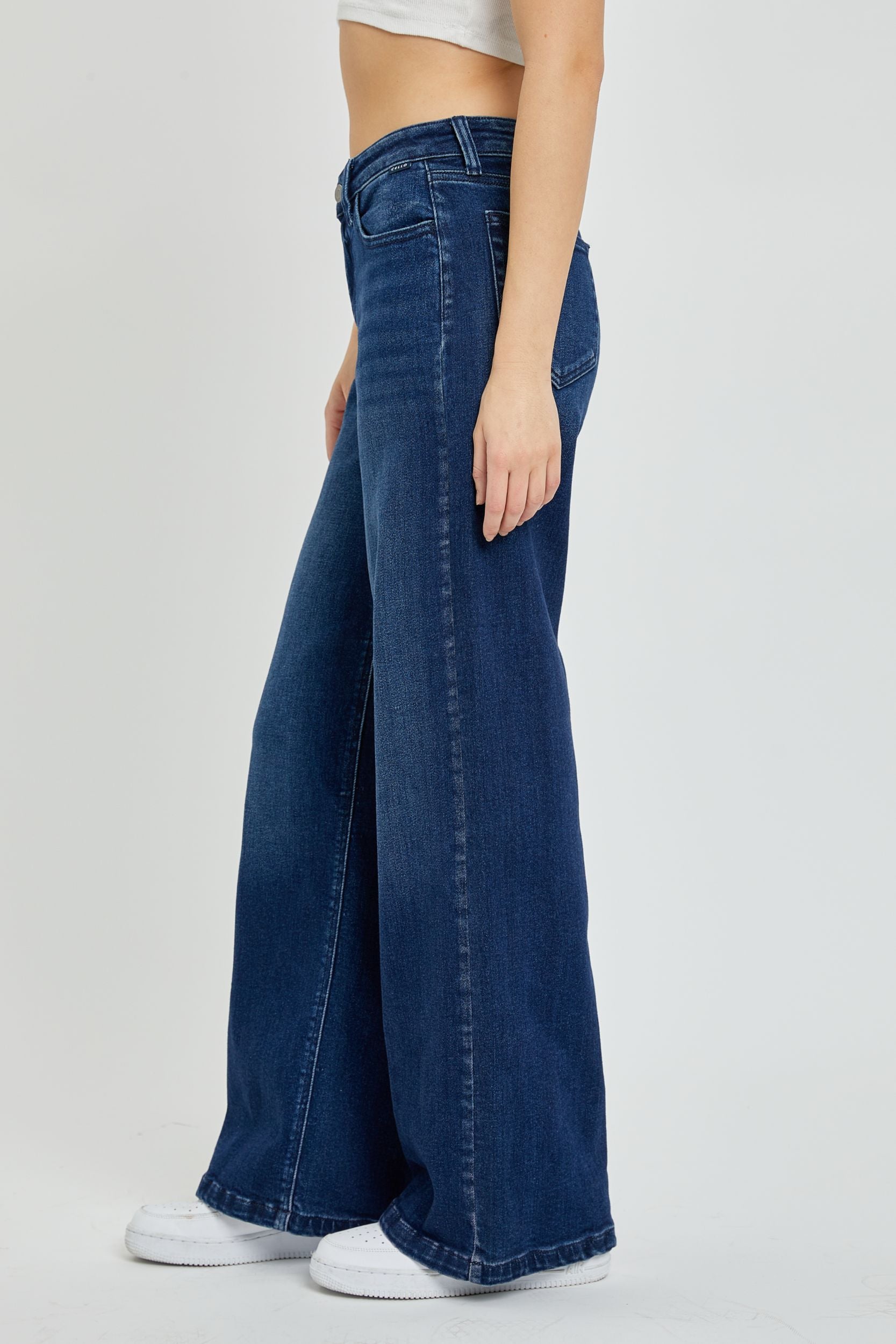 Jeans anchos con caída fluida y acabado limpio. Diseño relajado con talle medio y silueta libre para un look moderno y cómodo.